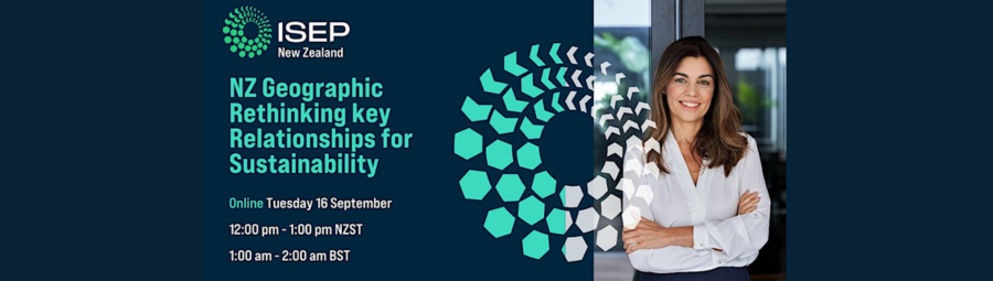 NZ160925 NZ Geographic Rethinking key Relationships for Sustainability Online | 16 September 2025 | 12:00pm - 1:00pm Join ISEP New Zealand for an engaging webinar on NZ Geographic Rethinking key Relationships for Sustainability. Key reasons to attend this event: - Learn how to break the rules in an established industry to drive transformation.