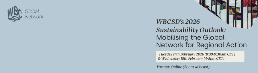 WBCSD 2026 Sustainability Outlook Online | 17/18 February 2026 Mobilising the Global Network for Regional Action. Designed to celebrate the Global Network and explore how sustainability trends will shape business action in the year ahead, the virtual event will include updates from a range of global business leaders and experts including Peter Bakker (WBCSD CEO) and Ilham Kadri (Syensqo CEO and WBCSD Chair). | |